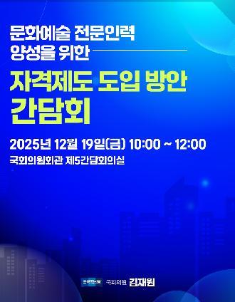 (문화예술 전문인력 양성을 위한) 자격제도 도입 방안 간담회의원회관 제5간담회의실(208호)